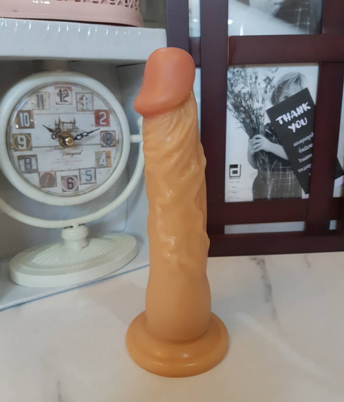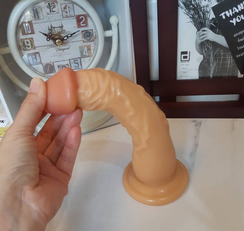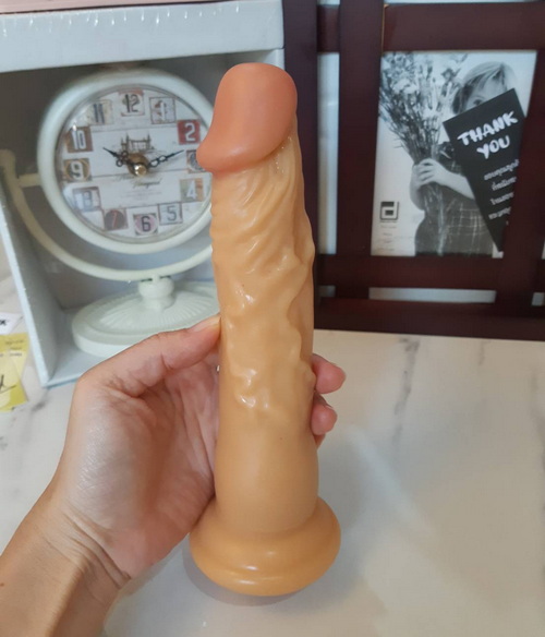 ดิลโด้ดิดพื้นสีเนื้อ ผิวนิ่มแน่น ทรงยาวไร้ไข่สอดได้ลึก ขนาดรอบวง 4.7 ยาว 7 นิ้วไม่รวมฐาน